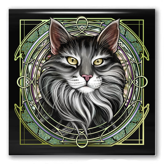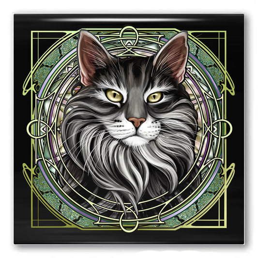 Tabby Extra-Longhair Gray - Rose Window Ceramic Coaster