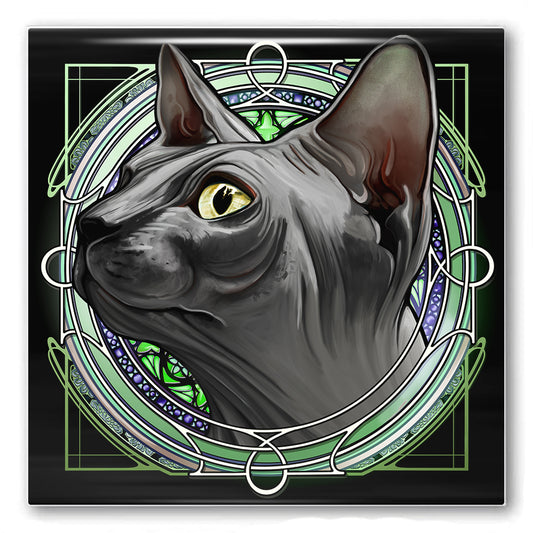 Sphynx Gray Seal - Rose Window Ceramic Coaster