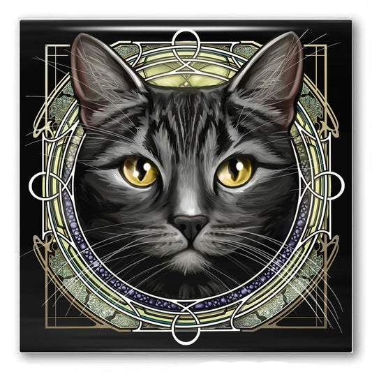 Tabby Shorthair Gray - Rose Window Ceramic Coaster
