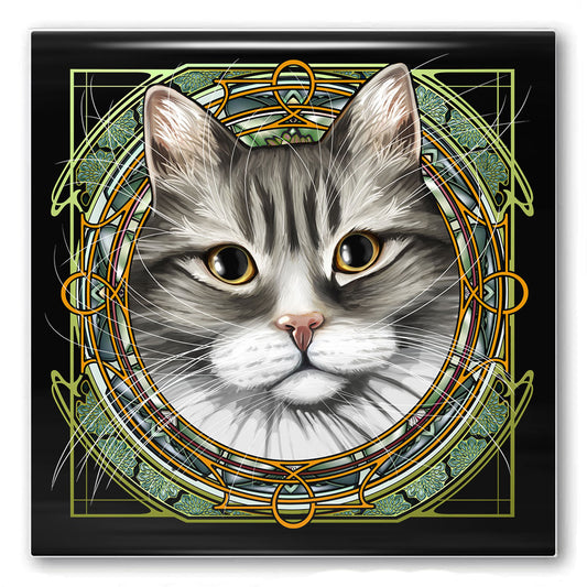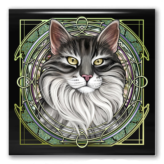 Tabby Tuxedo Extra-Longhair Gray - Rose Window Ceramic Coaster