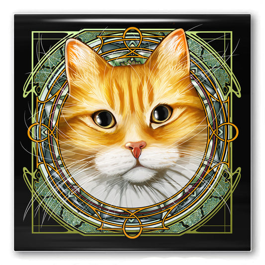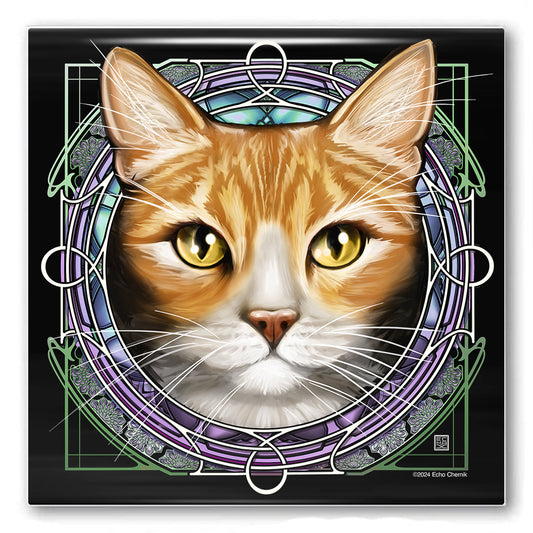Tabby Tuxedo Orange Dragoneyes - Rose Window Ceramic Coaster
