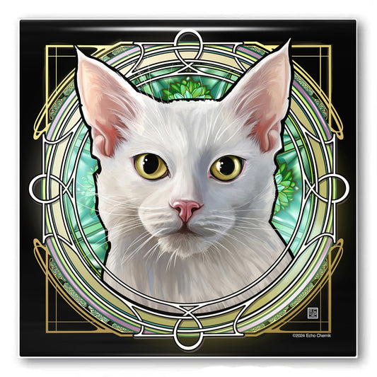 White Shorthair Heterochromia - Rose Window Ceramic Coaster