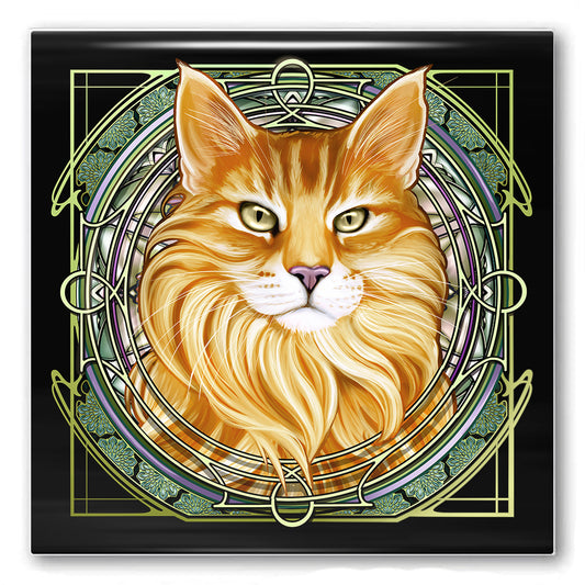 Maine Coon Orange - Rose Window Ceramic Coaster