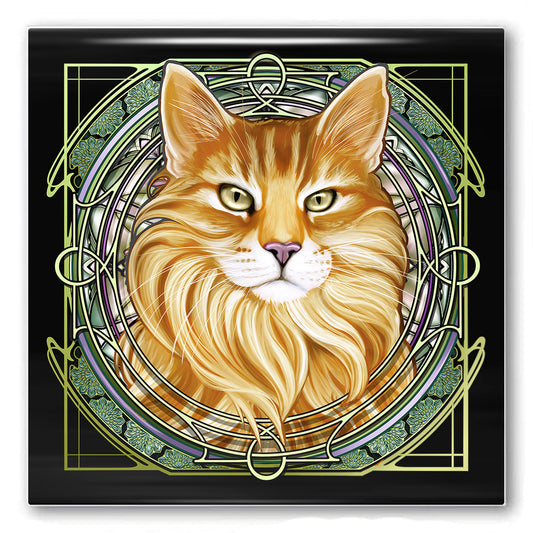 Tabby Extra-Longhair Orange - Rose Window Ceramic Coaster
