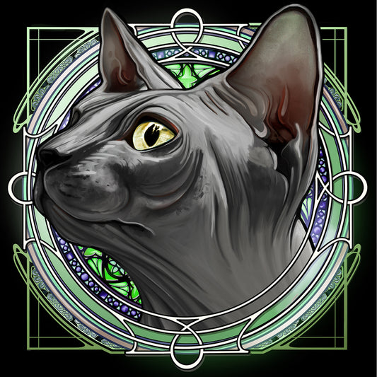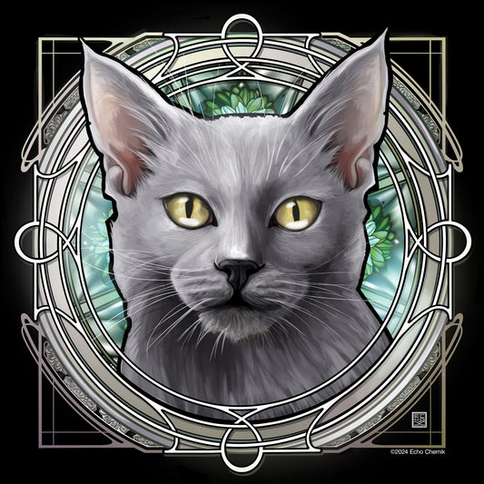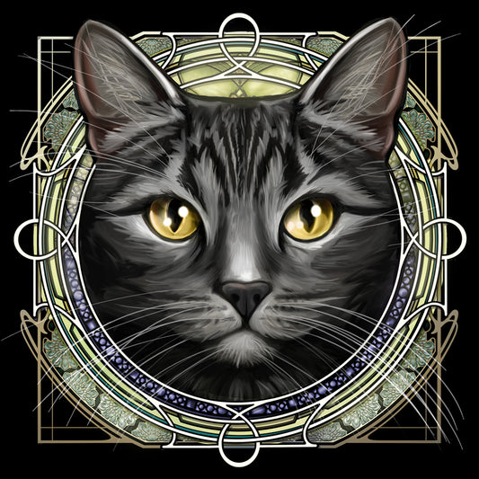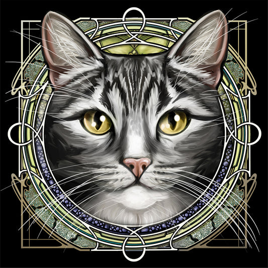 Gray Extra-Longhair Tabby Tux - Rose Window