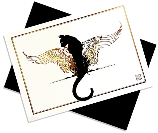 Gold Foil Black Cat with Wings Greeting Card