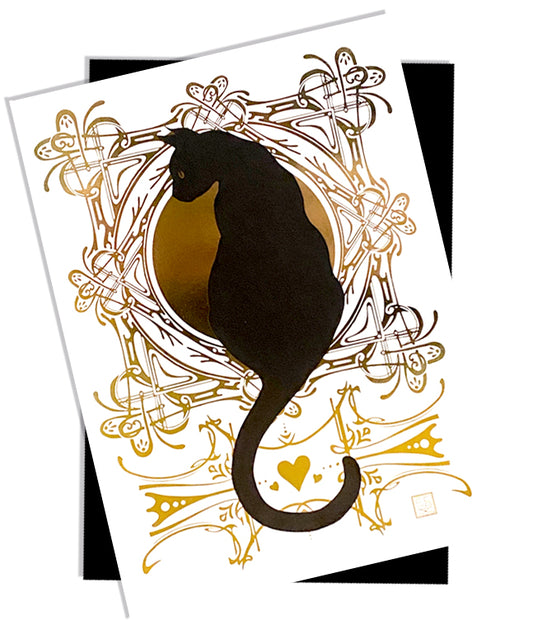 Gold Foil Black Cat Greeting Card