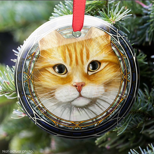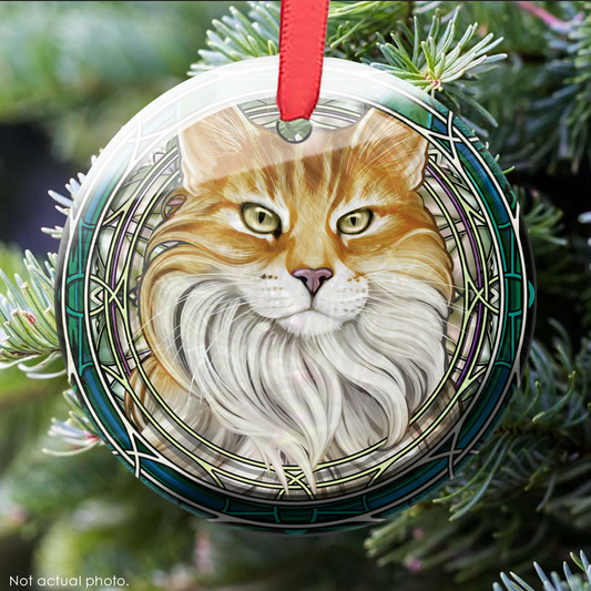 Tabby Tuxedo Extra-Longhair Orange Glass Ornament